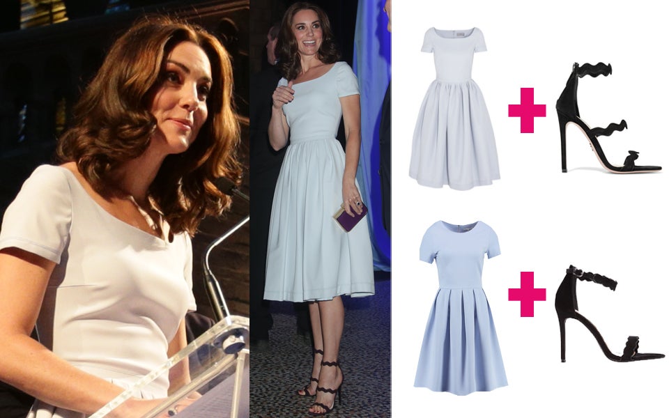 Wer Kates Look nachshoppen möchte, aber nicht so tief in die Tasche greifen will, wird im Netz fündig. Von Mint & Berry gibt es ein Jersey-Dress, das von Schnitt und Farbe dem Preen-Kleid sehr ähnelt, aber deutlich günstiger zu haben ist (59,95 Euro). Und auch das passende Schuhwerk gibt es als budgetfreundliches Lookalike: das Modell "Princess" von Wallis, ebenso um 59,95 Euro. Auch dieses Paar von Missguided sieht Kates Sandalen zum Verwechseln ähnlich.