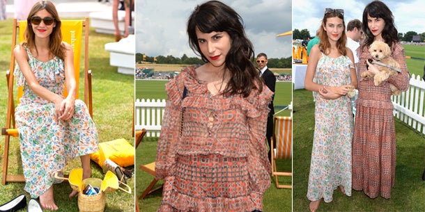 Oma-Style im Doppelpack - So erschienen die beidem beim Veuve Cliquot Cup in Essex und gaben ein hübsches Paar ab. Caroline Siebers perfektionierte den Look mit den passendem Schoßhündchen. Das nennt man Liebe zum Detail! Da kommt Alexa Chung mit ihrer Korbtasche leider nicht dagegen an.