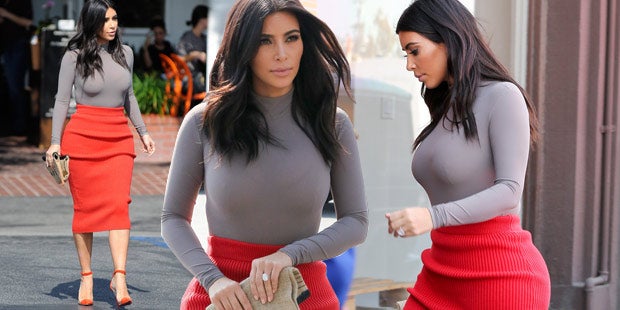 Gegen das Outfit an sich ist nichts zu sagen. Perfekt für den Herbst, wenn die Temperaturen langsam zu sinken beginnen. Der knallrote Wollrock sitzt gut an ihrer Taille und hört etwa zehn Zentimeter unter dem Knie auf. Das taupefarbene Shirt mit den langen Ärmeln und dem leichten Rollkragen liegt eng an und betont Kims weibliche Silhouette. Dazu spitze High Heels mit roten Akzenten und der Herbst-Look ist perfekt. Dass in Kalifornien der Herbst noch nicht eingezogen ist, hat Kim wohl noch nicht bemerkt - oder es ist ihr einfach egal.