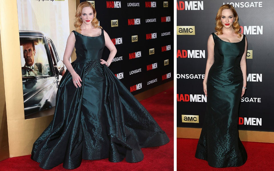 Huch, was ist denn mit Christina Hendricks Abendkleid passiert? War da nicht eben noch ein weiter Rock? Ja!