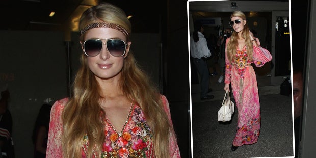 Weil ihre Karriere derzeit ein wenig stagniert, setzt Paris auf Flower Power. In einem knallpinken bodenlangen Dress mit wildem Blumenmuster ließ sie sich kürzlich am Flughafen von Los Angeles blicken. Dazu wählte sie stilecht das typische Hippie-Haarband als Accessoire und viele Armreifen. Nur die schmucke Designertasche wollte nicht ganz zur neuen Peace-Attitüde passen. Man fragt sich unweigerlich, welches arme Tier, denn dafür sterben musste.
