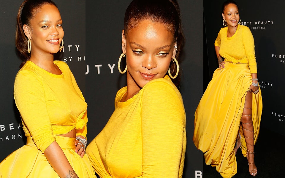 Bei der Präsentation ihrer Beauty-Linie bei der New York Fashion Week setzte Rihanna auf Kanariengelb.