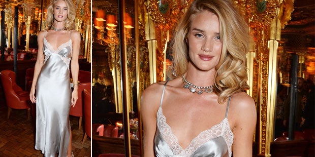 Da staunten die Gäste nicht schlecht, als Rosie Huntington-Whiteley sie im Londoner Café Royal im Nachthemd begrüßte. Seide, Spitze - sehr hübsch und verführerisch. Aber so hätten wir sie doch eher in ihrem Schlafzimmer erwartet, nicht auf einer Cocktail-Party.