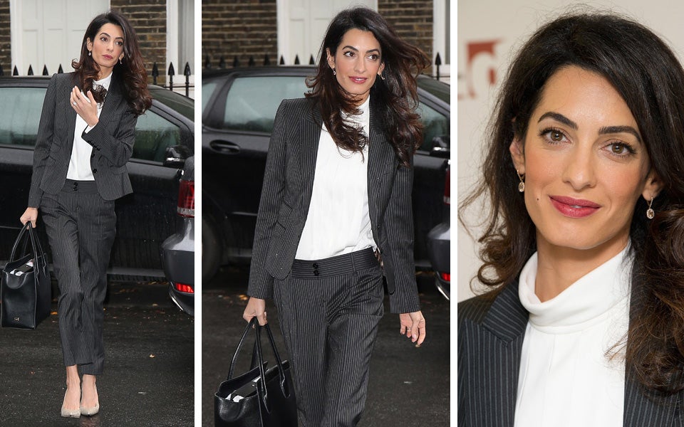 Das Beste an Amals Look? Dass er auch an Otto-Normal-Verbrauchern wirklich toll aussieht! Ein Nadelstreifen-Anzug steht wirklich jeder Frau, und auch für den dezenten, eleganten Schmuck muss man keinen extravaganten Modegeschmack haben. Wir sagen: Weiter so Amal! Du bist eine tolle Inspirationsquelle!