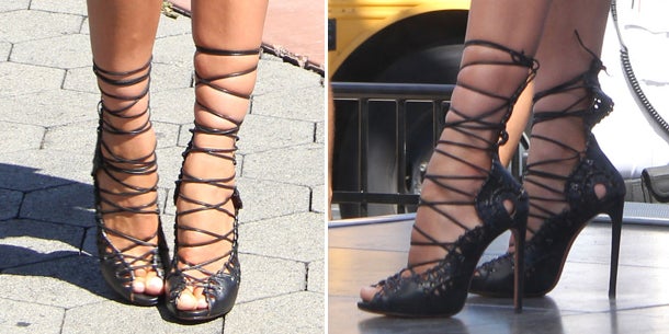 Wer dieses Heels entworfen hat, könnte womöglich sadistische Neigungen haben. Wenn selbst schlanke Modelwaden wie Presswurst aussehen, möchten wir eigentlich nicht wissen, wie die Beine von Normalsterblichen in diesen Sandalen aussehen.