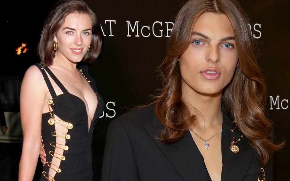 25 Jahre ist es her, dass Elizabeth Hurley mit ihrem ikonischen Versace-Kleid Modegeschichte schrieb. Die damals noch unbekannte Aktrice begleitete ihren damaligen Partner, Hugh Grant, zur Premiere von "Vier Hochzeiten und ein Todesfall" und zierte am Tag darauf die Titelblätter der Zeitungen: Goldene Sicherheitsnadeln sorgten für die wohl aufsehenerregendste Seitenansicht der 90er-Jahre. Bei einem Beauty-Event in London zollte Söhnchen Damian (17) seiner Mutter Mode-Tribut und trug ein Sakko im selben Look. Natürlich zeichnete sich auch für diesen Look Donatella Versace verantwortlich.