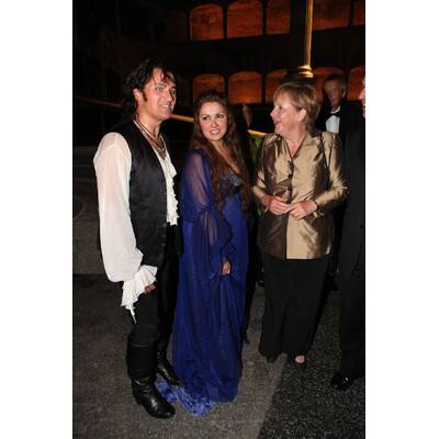 Ein Premierengast war ganz besonders stolz auf die Diva: Erwin Schrott. Netrebkos privater „Romeo“ saß ganz vorne im Publikum und jubelte seiner großen Liebe zu. Als glühender Netrebko Fan outete sich sich auch Deutschlands Kanzlerin: Angela Merkel ließ sich nicht nehmen, bei der Premierenfeier der Operndiva persönlich zu gratulieren. Sie besuchte mittlerweile mehr Premieren in Salzburg als in Bayreuth