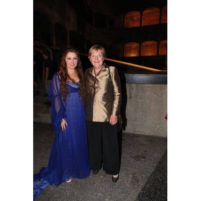Die deutsche Kanzlerin Angela Merkel gratulierte Anna Netrebko persönlich zu ihrem gelungenen Premieren-Auftritt.