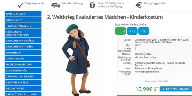 "Evakuierter Junge": Ein Partyshop bietet "2. Weltkriegs Kostüme" für Kinder an.