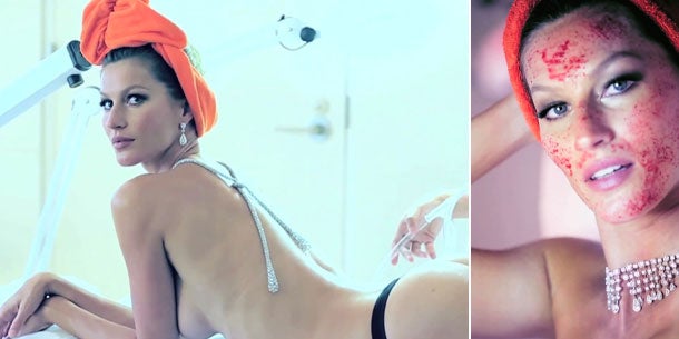 Es gibt die verrücktesten Beauty-Treatments, die bereits von den unterschiedlichsten Stars, wie Jennifer Aniston, Kim Kardashianoder oder Demi Moore, getestet wurden. Es scheint nun so, als mache sich Gisele Bündchen einen Spaß und ahmt die Behandlungen in der in der italienischen Juni-Vogue Ausgabe nach.