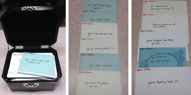 Eine Frau aus den USA hat ihrem Mann jedoch ein ganz besonderes Geschenk überreicht. Keine Rosen, keine Schokolade, nur eine einfache Holzschachtel. Als er sie öffnet, findet er viele kleine Briefumschläge.