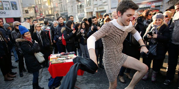 Angesichts der wachsenden Zahl brutaler Morde an Frauen in der Türke demonstrierten Männer in gegen die Gewalt in ihrem Landrieren. "Wir marschieren in unseren Miniröcken für alle Frauen", hieß es in dem Aufruf zu der Demonstration, der unter anderem über Facebook und Twitter verbreitet wurde. Mit der Kundgebung sollte nicht zuletzt gegen den Mord an der Studentin Özgecan Aslan protestiert werden.