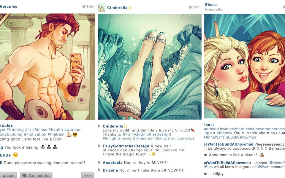 Wie witzig! Die amerikanische Künstlerin Simona Bonafini hat sich Gedanken darüber gemacht, wie sich unsere liebsten Disney-Charaktere wohl auf Instagram verhalten würden. Das Ergebnis ist nicht nur urkomisch, es ist auch einfach so vorstellbar!! Die Künstlerin hat die Charaktere von Elsa, Alice im Wunderland und Co so perfekt getroffen, dass sie ihnen die passende Instagram-Persönlichkeit ohne Probleme zuordnen konnte.