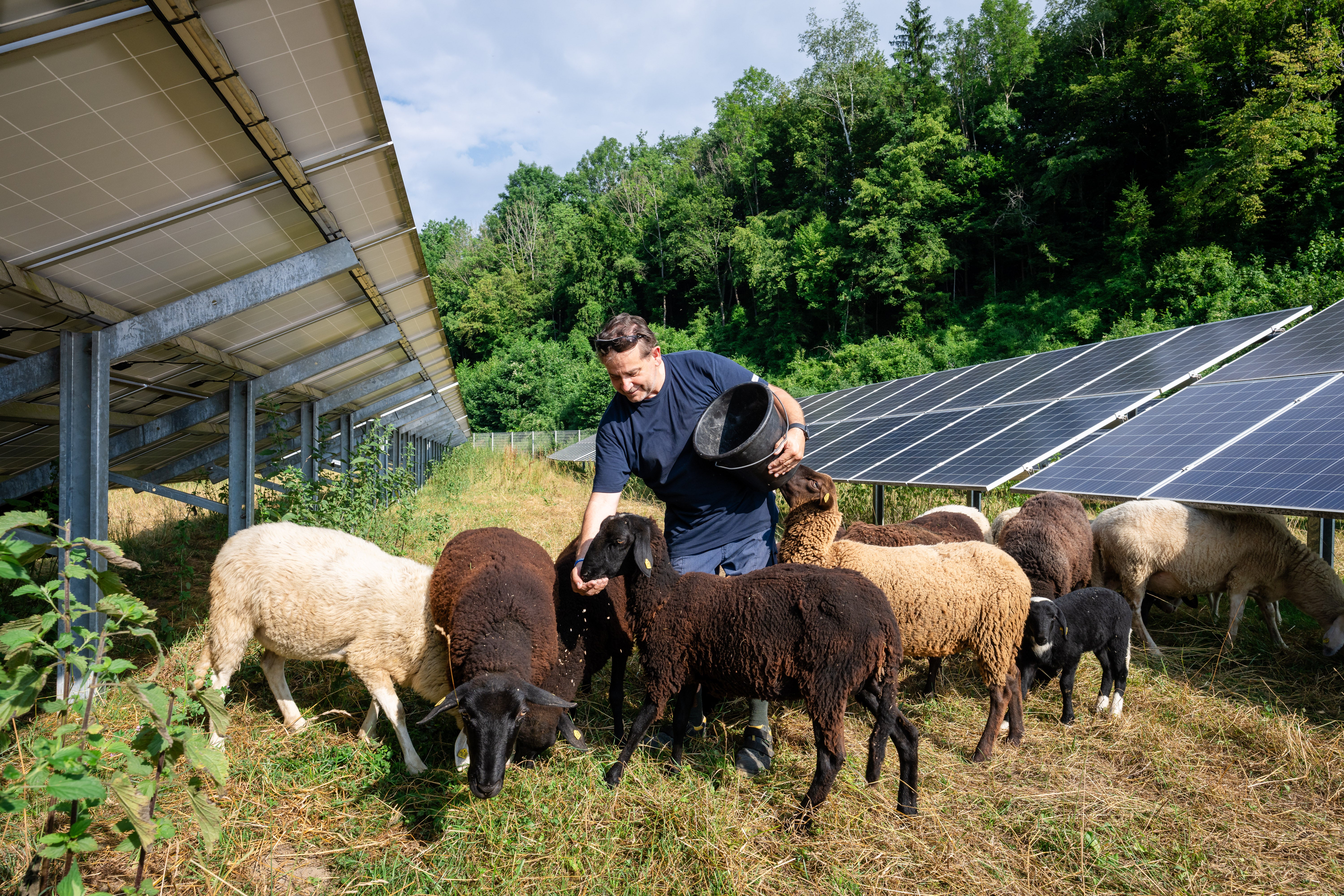 Josef Andreaschs Schafe finden zwischen den Paneelen perfekte Bedingungen.