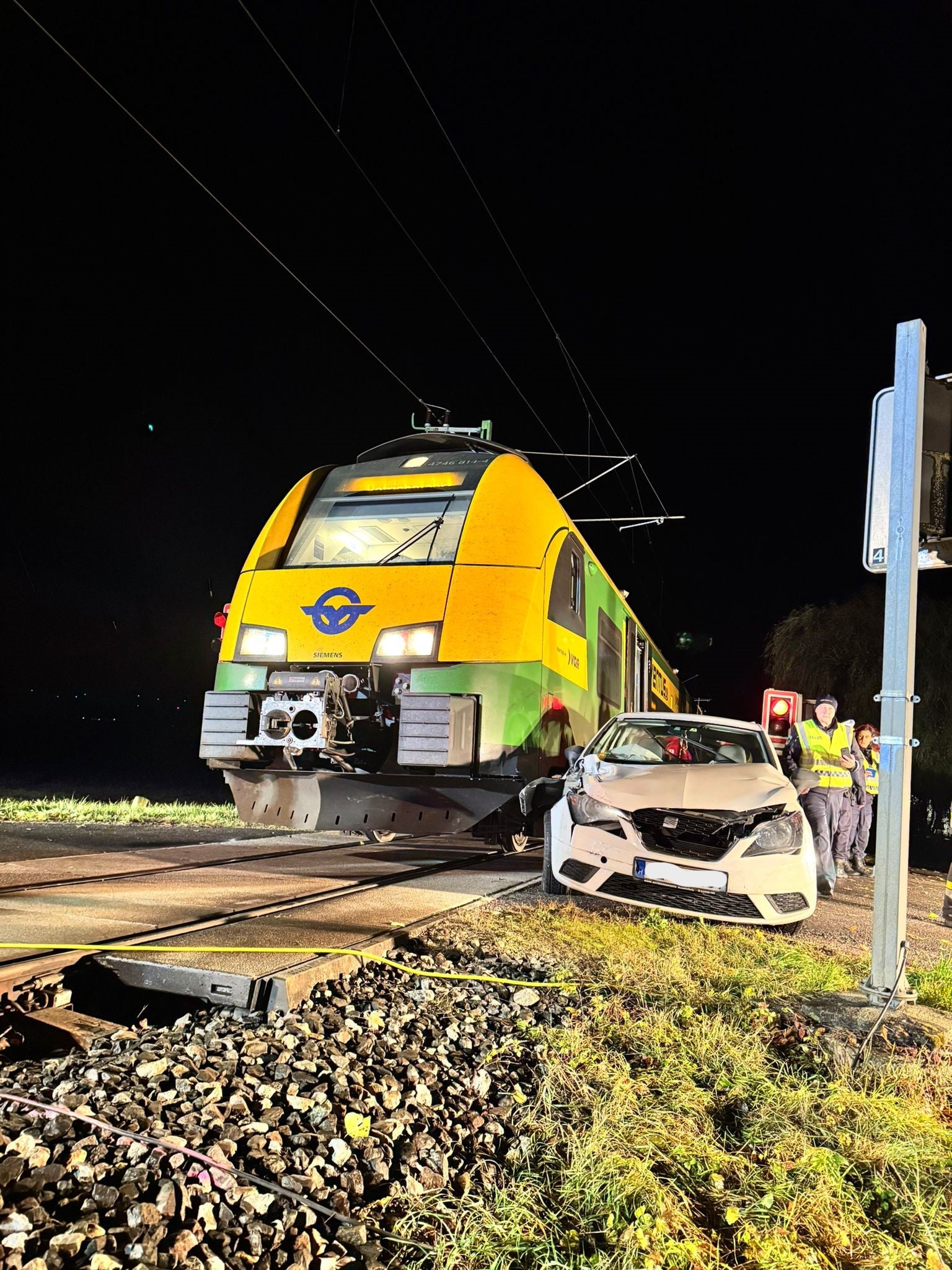 Die Front des Fahrzeuges wurde bei der Kollision beschädigt. Die alarmierte Feuerwehr konnte das Auto von der Straße bergen und gesichert abstellen. Der Bahnübergang blieb für die Aufräumarbeiten nach dem Unfall bis 21 Uhr gesperrt.