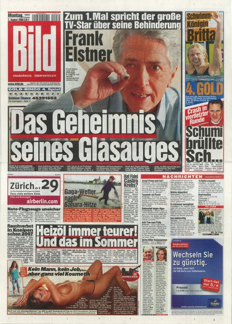 oe24.at Inland Deutschland Bild 07.08.06, 11:18 | Aktualisiert: 12.07.10, 18:32 Teilen 07.08.2006 Bild: Titelseite vom 07.08.2006 © oe24 Fehler im Artikel gefunden? Jetzt melden. Die Top-Stories vom oe24 E-Paper Opernball-Hammer: "Die Nanny" Fran Drescher ist Stargast in der Lugner-Loge US-Außenminister: Mullahs schwächer als je zuvor Swarovski & Ostrowski als ESC-Duo: 1. Seitenhieb bei ORF-Pressekonferenz Ohne zu zahlen von Hotels abgehauen - Einmietbetrügerin in Tulln gefasst Kino-Desaster: Trump-Doku „Melania“ hat in Wien bislang noch kein Ticket verkauft "Morning Coffee Rave" lockt prominente Morgenmuffel an "Reifen aufgeschlitzt" - Ärztin im Pilnacek-Ausschuss packt aus "Depperte Aktion" – 10 Jahre Haft für Bim-Sniper