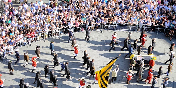 10.000 Schaulustige haben am Samstagnachmittag den Sarg von Otto und Regina Habsburg durch die Wiener Innenstadt am Weg in die Kaisergruft der Kapuzinerkirche verfolgt, berichtete die Polizei. Im Trauerzug befanden sich 3.500 Personen - an der Spitze Musik, Fahnenabordnungen, Schützen, Ordenskissenträger und Klerus. Hinter dem Sargwagen folgten Mitglieder der Familie Habsburg und Trauergäste aus Politik und Adel.