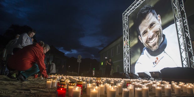 Bis zu tausend Teilnehmer bei schlichter und stiller Feier für tödlich verunglückten Extremsportler und Piloten.