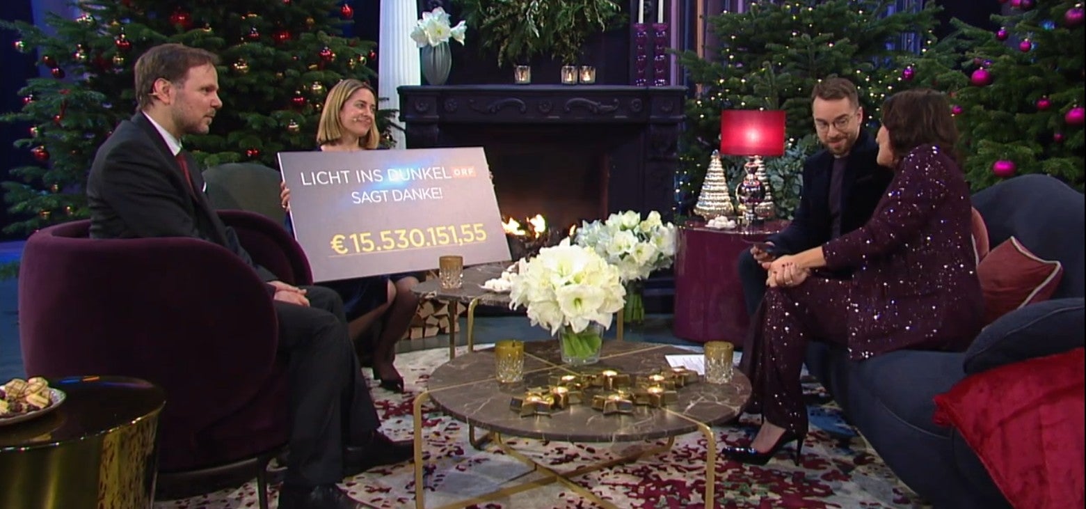 Auch heuer stand der 24. Dezember ganz im Zeichen des Guten Zweck. Mit Unterstützung zahlreicher Prominenter und Politiker, wie Bundeskanzler Christian Stocker, Vizekanzler Andreas Babler, Außenministerin Beate Meinl-Reisinger oder Verteidigungsministerin Klaudia Tanner und Soldaten des Bundesheeres wurden am Heiligen Abend im ORF an den Spendentelefonen Beiträge für Menschen in Not entgegengenommen.Insgesamt wurden dabei 15.530.1513,55 Millionen Euro gesammelt.