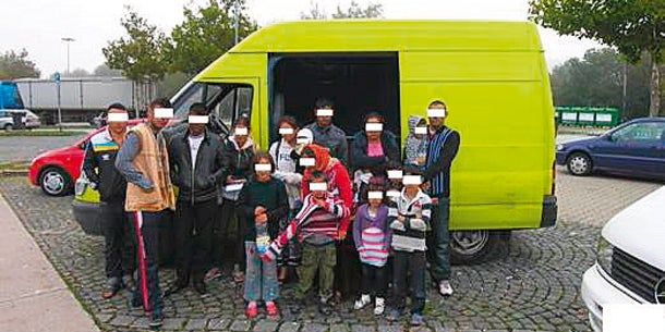 Die deutsche Autobahn A 3 bei Passau Donnerstag früh: Verkehrspolizisten fällt am Rastplatz Donautal ein hellgrüner Ford-Transit-Kastenwagen auf, der aus Oberösterreich kommt. Im Fahrerraum drei Personen, dann die Überraschung: Aus dem Ladebereich steigen 14 weitere Personen aus, darunter Frauen und Kleinkinder. „Wir wollen nach Frankreich“, sagt der Sprecher der 17-köpfigen Familie. Die Polizei stoppt den Rumänen-Transport.