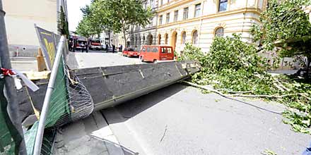Ein rund 35 Tonnen schwerer Betonträger ist am Montagvormittag auf einer Baustelle in der Wasserwassergasse in Wien-Landstraße aus der Verankerung gerissen und umgestürzt. Die etwa 20 Meter lange Säule war zuvor von einem Kran aufgestellt worden. Der Träger fiel auf die Oberleitung und einen Baum und blieb quer über die Fahrbahn liegen. Verletzt wurde niemand.