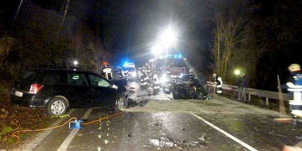 Die Feuerwehr konnte den Arbeiter, der nicht angeschnallt war, nur noch tot aus seinem Wagen bergen. Das andere Unfallopfer erlitt schwere, aber keine lebensbedrohlichen Verletzungen.