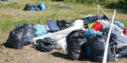 „Checker“, ziehen mit Müllsäcken übers Gelände. Ob sie hier legal arbeiten?