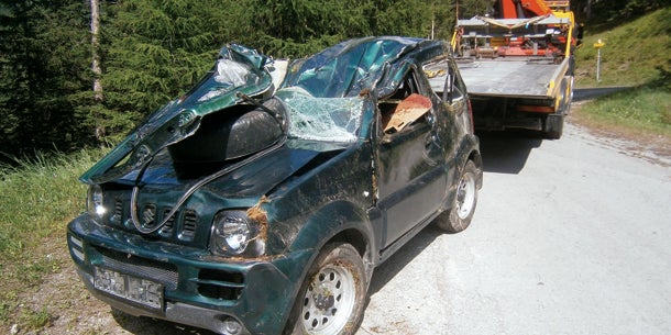 Das Dach des Jeeps ist eingedrückt, die Windschutzscheibe zersprungen. Aus diesem Wrack heraus rettete die Feuerwehr einen 82-Jährigen. Der Lenker war am Mittwochnachmittag in Ried im Oberinntal von der Forststraße abgekommen. Er stürzte rund 30 Meter in die Tiefe und landete in einem Wald. Wanderer hörten schließlich die Hilferufe des 82-Jährigen und alarmierten die Rettung.