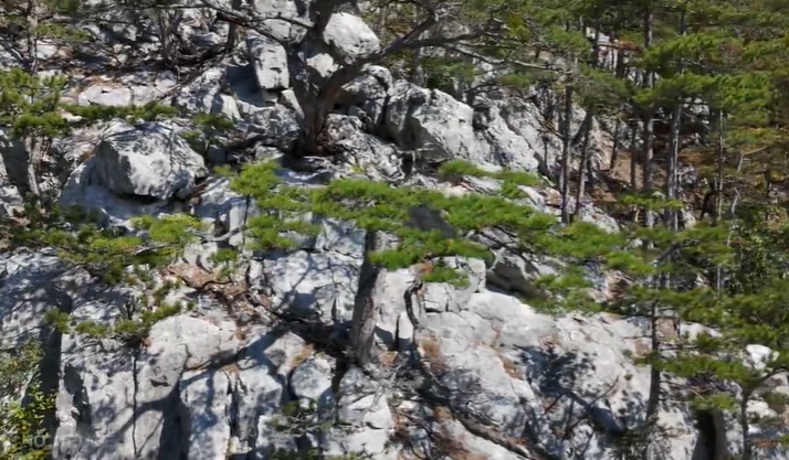 Die Schwarzföhre thront auf 540 Metern Höhe, direkt über der B21. Ihre Umgebung ist alles andere als einladend – ein karger Kalkfelsen, der nur spärlich Wasser und Nährstoffe bietet. Dennoch hat sie sich hier seit 1179 behauptet. Während in der Umgebung das industrielle Treiben boomt und der Verkehr auf der Straße lärmt, steht die uralte Föhre wie ein stummer Zeuge längst vergangener Zeiten.