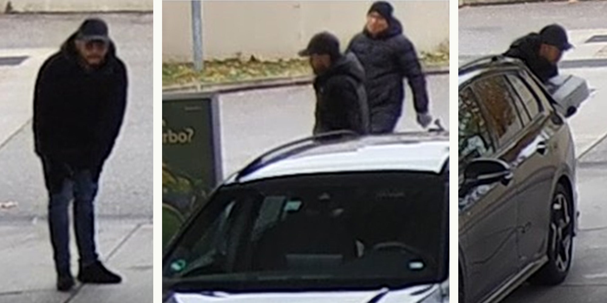 Neu veröffentlichte Lichtbilder, die von der Überwachungskamera der Tankstelle aufgenommen wurden, zeigen den Coup der beiden Unbekannten. Die beiden Männer schlichen um das Fahrzeug herum und nahmen schließlich eine weiße Box, in der sich die Luxus- Ware befunden hatte, mit.