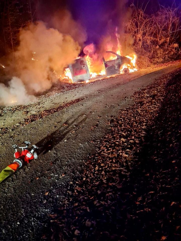 Stmk. Soviel ist über den mehr als kuriosen Einsatz in einem Wald bei Peggau bekannt: Ein 40-Jähriger war mit einem Kleinbus auf einer abgelegenen Schotterstraße im Dunkel unterwegs, als es gegen 21:30 Uhr plötzlich aus der Motorhaube herausrauchte. Der Steirer legte in einer Ausbuchtung eine Vollbremsung hin, währenddessen das Fahrzeug voll in Brand geriet, der sich obendrein auf Boden, Böschung und Wald ausbreitete.