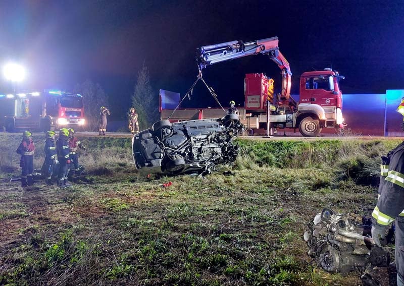Um dreiviertel eins nach Mitternacht überschlug sich ein Audi A 6 aus noch nicht geklärter Ursache auf der Landstraße bei Matzles - der junge Lenker, der gegen zwei Feldzufahrten krachte, starb noch an der Unfallstelle.