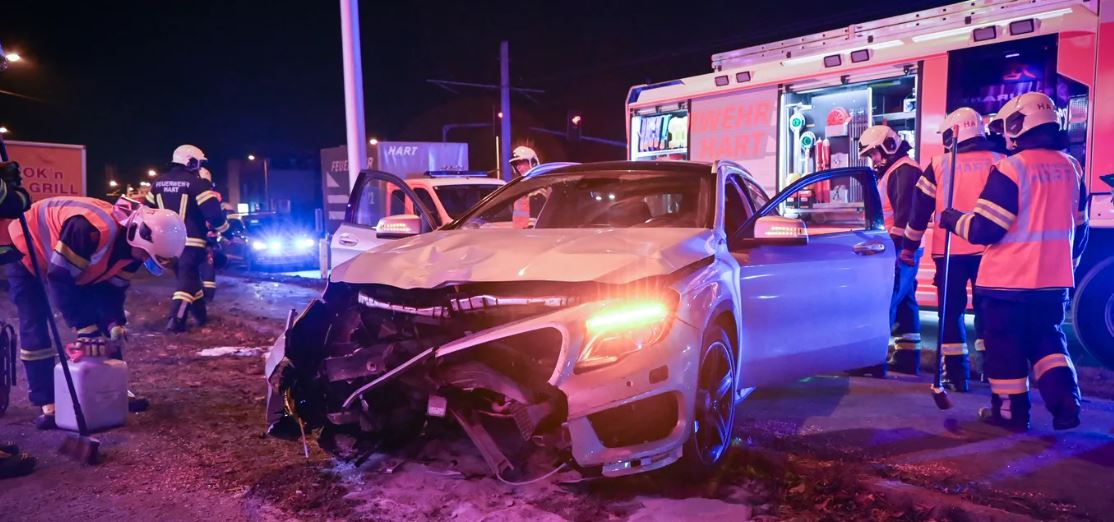 OÖ. Samstag kurz nach 21:00 Uhr wurden die Einsatzkräfte des Roten Kreuzes, des Samariterbundes, der Feuerwehr sowie der Exekutive zu einem spektakulären Verkehrsunfall in den Leondinger Stadtteil Hart an der schnurgeraden Welser Straße alarmiert.