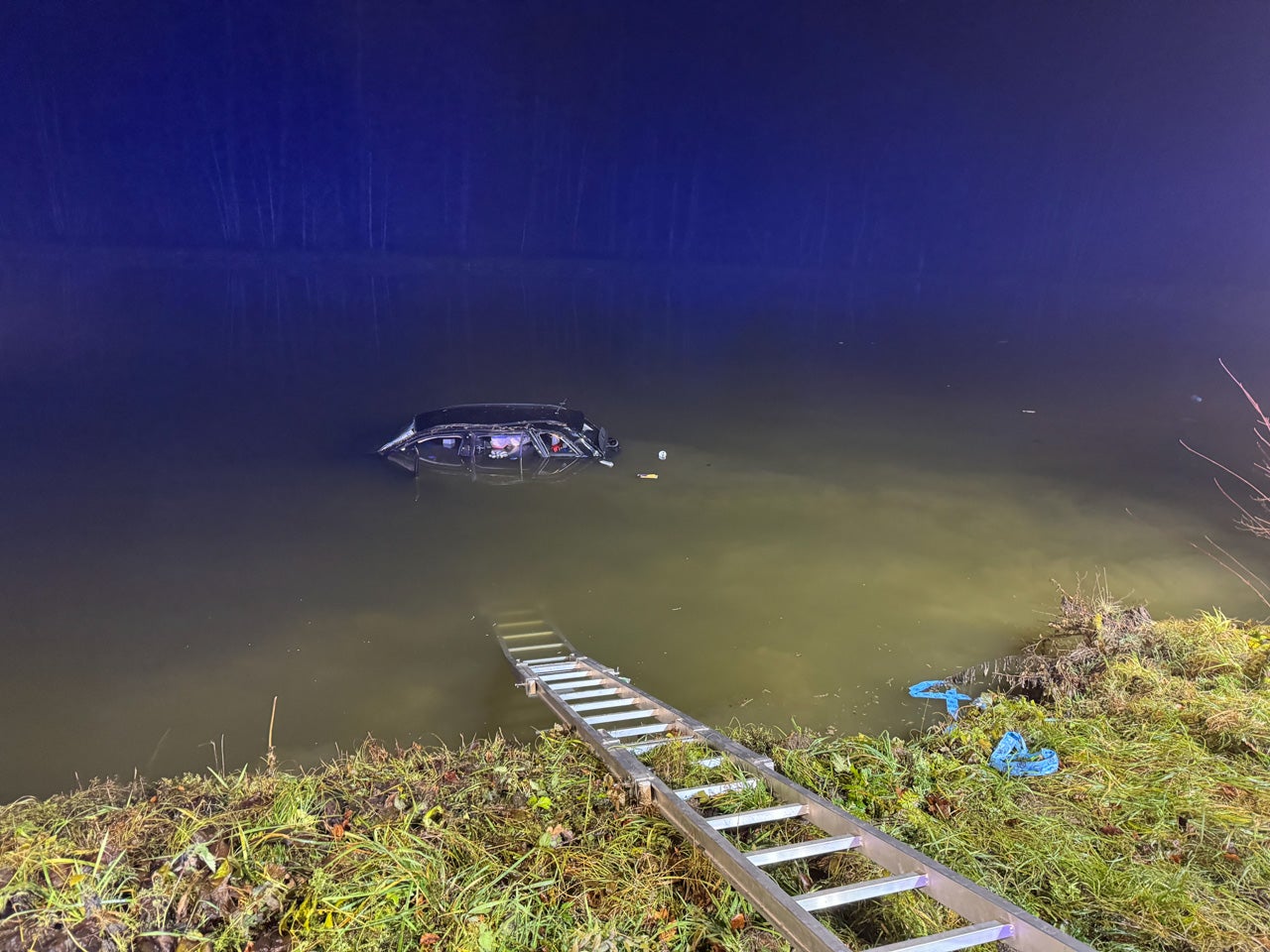 Eine 68-Jährige kam Dienstagnacht mit ihrem Pkw von der Fahrbahn ab und stürzte in einen Fischteich. Dabei erlitt sie Verletzungen unbestimmten Grades.