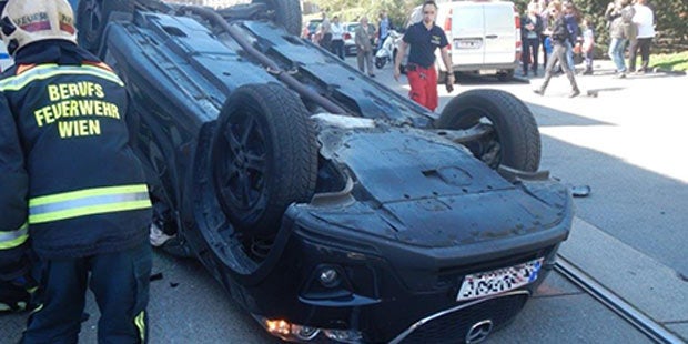 Zu einem spektakulären Verkehrsunfall ist es am Samstagnachmittag auf der Taborstraße in Wien-Leopoldstadt gekommen. Wie die MA 68 in einer Aussendung berichtete, kollidierten gegen 13.40 Uhr Am Tabor aus unbekannter Ursache zwei Fahrzeuge, wobei sich ein Auto überschlug und am Fahrzeugdach zu liegen kam.