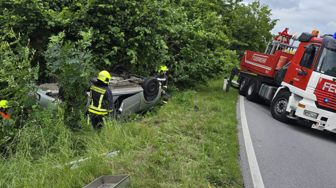 Die freiwilligen Feuerwehren aus der Region kümmerten sich anschließend um die Bergung des Wracks, welches schließlich abgeschleppt werden musste.
