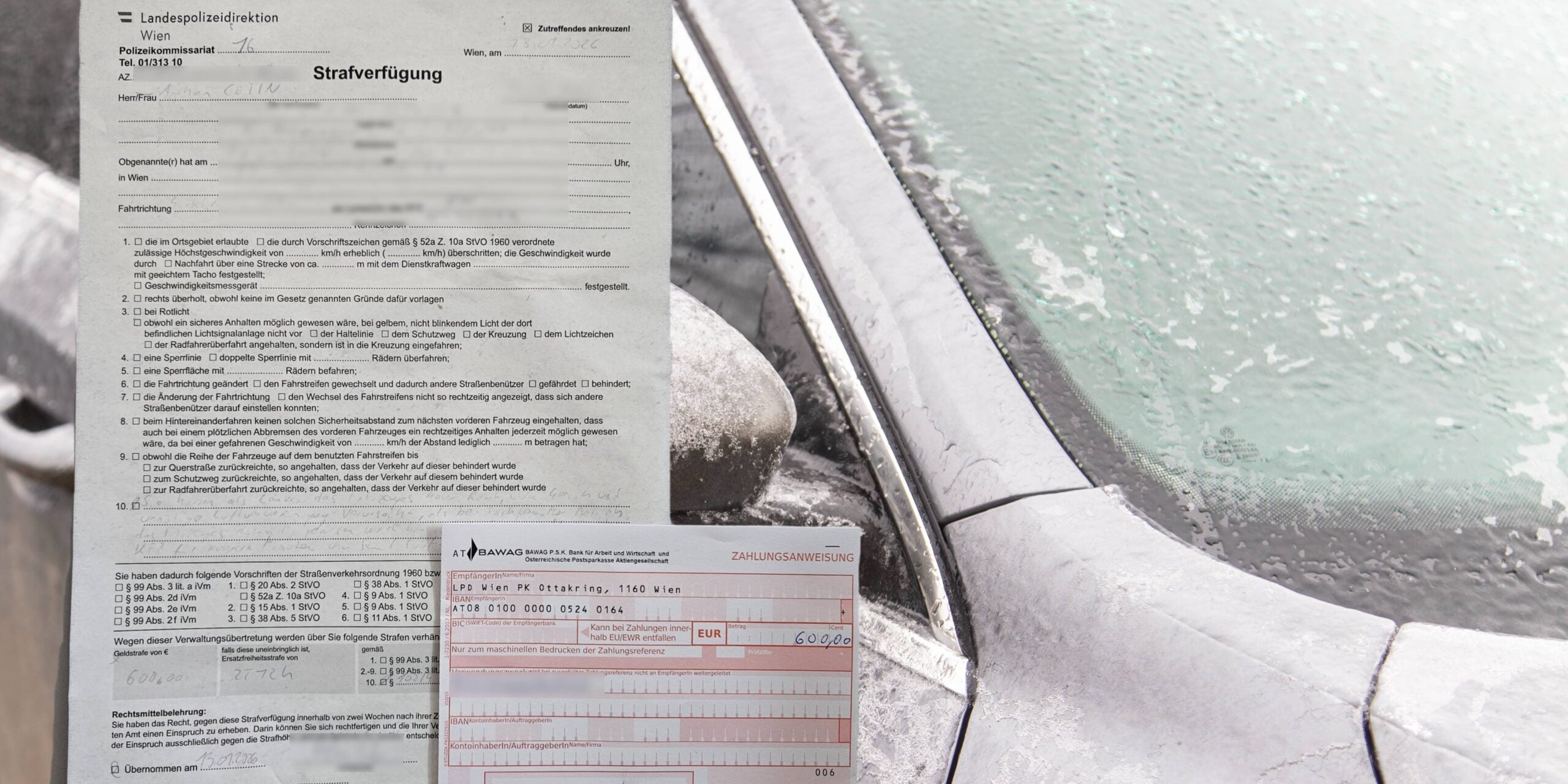Ganz schön teuer kam es einem Türken in Wien, der sein zugefrorenes Auto mit klarer Sicht aus dem Parkplatz steuern wollte. Der Mann ließ den Motor laufen und wartete, bis die Heizung das Eis auf der Windschutzschiebe zerschmolz. Das gefiel der Polizei gar nicht.