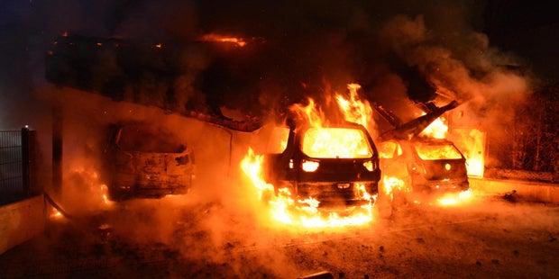 Die drei Pkw sind in einem Carport vollkommen abgebrannt.