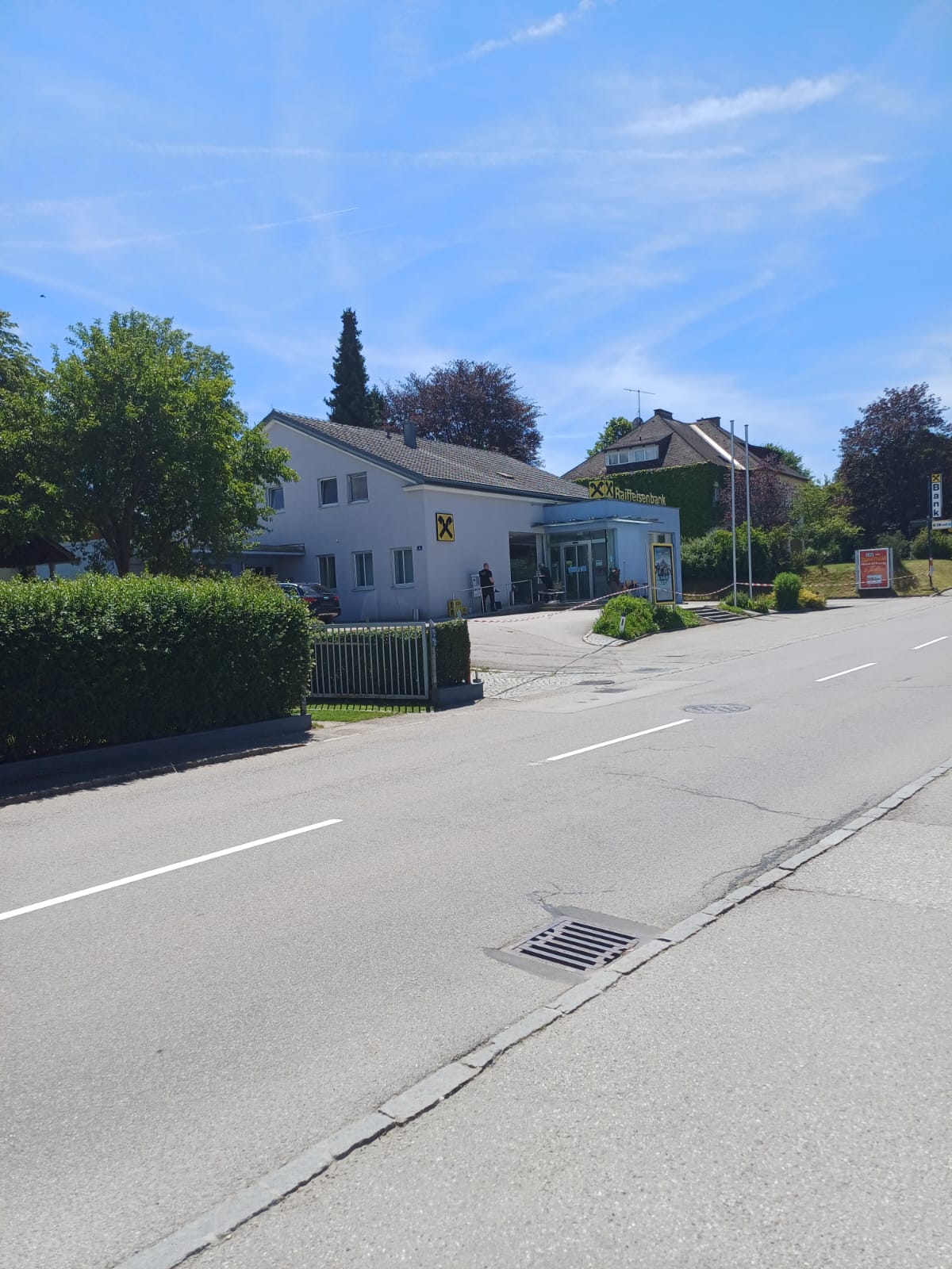 OÖ. Eine Bande soll in der Nacht von Montag auf Dienstag gegen 3 Uhr einen Bankomat in Windhaag bei Freistadt hochgejagt haben. Eine Zeugin hörte den Knall und beobachtete wie ein Auto von der kleinen Raiffeisen-Filiale davonraste. Die Täter flüchteten mit Beute in unbekannter Höhe. Weitere Ermittlungen laufen. Auf Fotos ist zu sehen: eine völlig zerstörte Auslagenscheibe, die Spurensicherung der Polizei geht ihrer Arbeit akribisch nach. Nachbarn wundern sich, dass die Polizei offiziell bisher noch nichts bekannt gegeben hat.