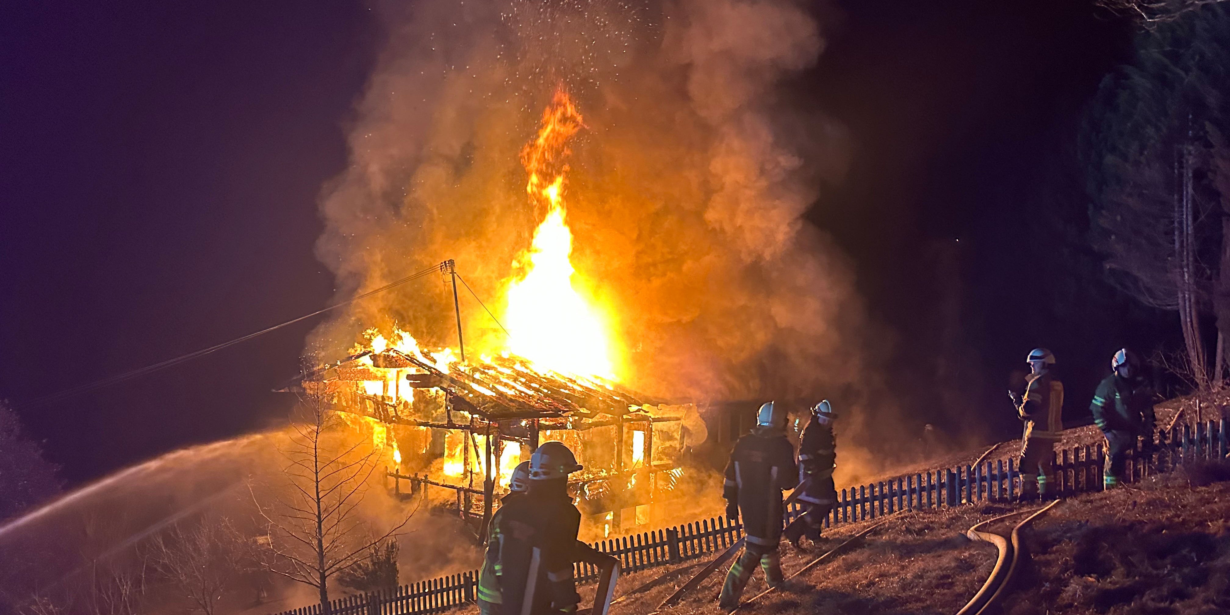 Am Vormittag fanden noch Nachlöscharbeiten statt. Die Arbeit der mehr als 100 Feuerwehrleute hatte sich sehr schwierig gestaltet - und zwar vor allem aufgrund der Lage des Bauernhauses. In der unmittelbaren Umgebung habe es kein Löschwasser gebe, habe man das Wasser aus zwei Weilern in der Nähe des Dorfs ableiten müssen, erklärte der Kommandant der Feuerwehr Oberau, Rainer Naschberger. Auch Tankwagen mit Löschwasser stünden im Einsatz.