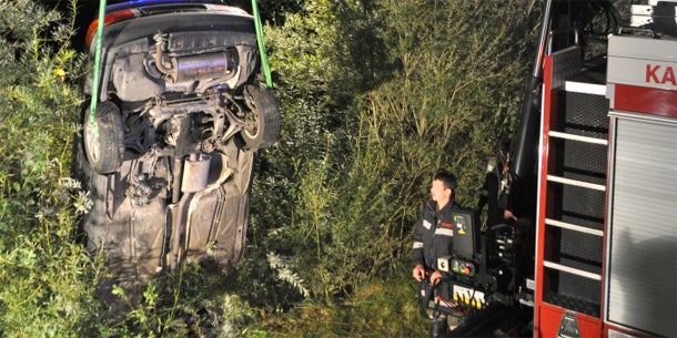 Der 39-Jährige blieb unverletzt. Das Auto wurde mit einem Kran geborgen.
