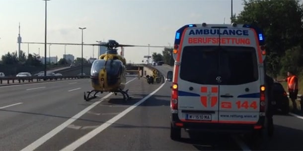 Ein Motorradlenker ist am Donnerstagvormittag bei einem Verkehrsunfall auf der A22 (Donauufer-Autobahn) in Wien lebensgefährlich verletzt worden. Bei dem Zusammenstoß mit einem Pkw, der sich gegen 9.00 Uhr in Fahrtrichtung Tangente zutrug, erlitt der 39-Jährige vor allem schwere innere Verletzungen, berichtete Ronald Packert, Sprecher der Wiener Berufsrettung.