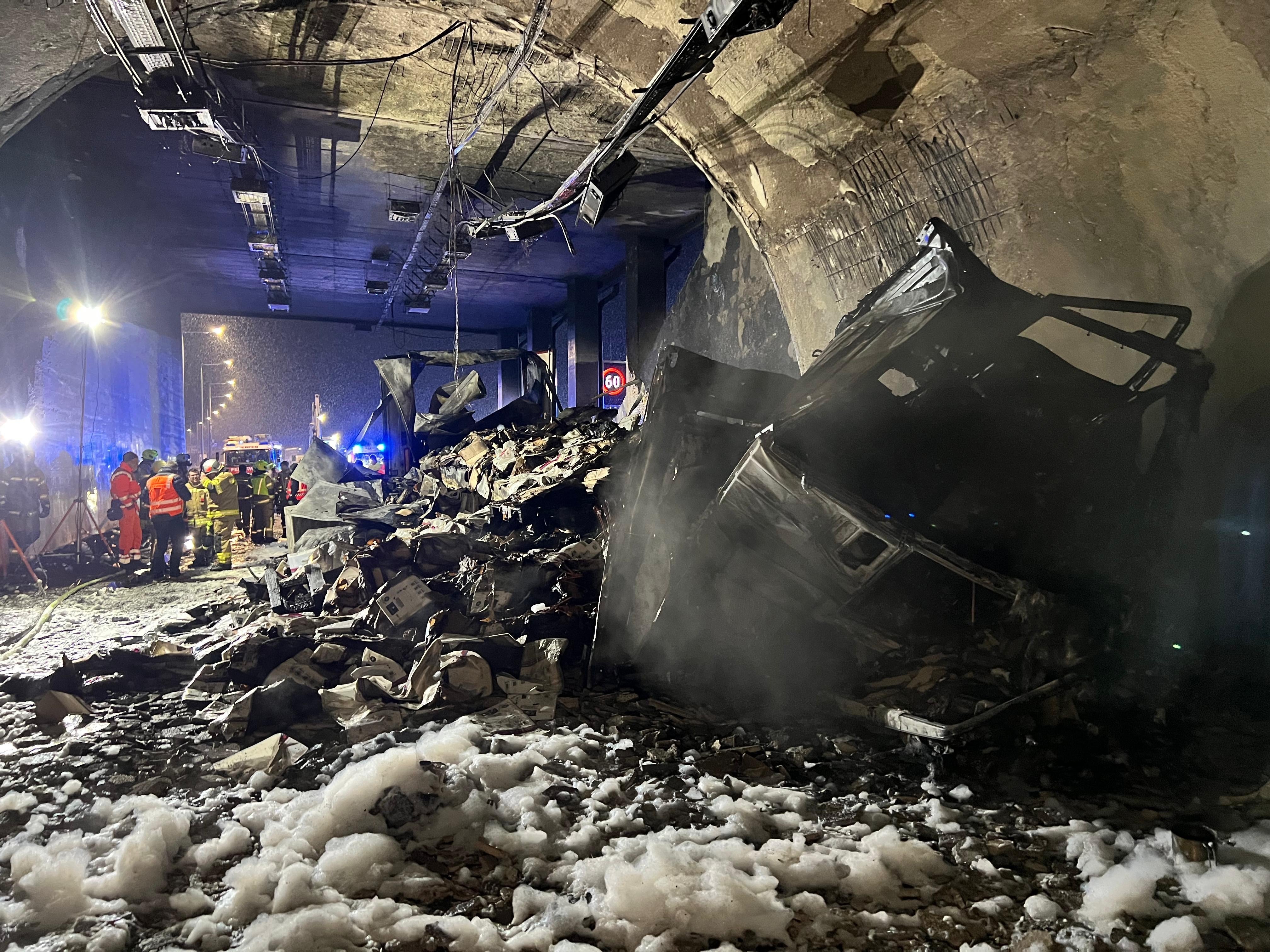 Am Unfall beim Tunnelportal um ca. 18.00 Uhr war nur der Lkw beteiligt, der dabei in Flammen aufging. Der Lenker wurde verletzt. Eine gute Stunde später war der Brand immer noch nicht völlig gelöscht, sagte Holzedl. Durch das Feuer sei auch der Tunnel beschädigt worden, weshalb nun Experten angefordert wurden, die nach Beendigung des Lösch- und Bergeeinsatzes das Ausmaß der Schäden begutachten werden.