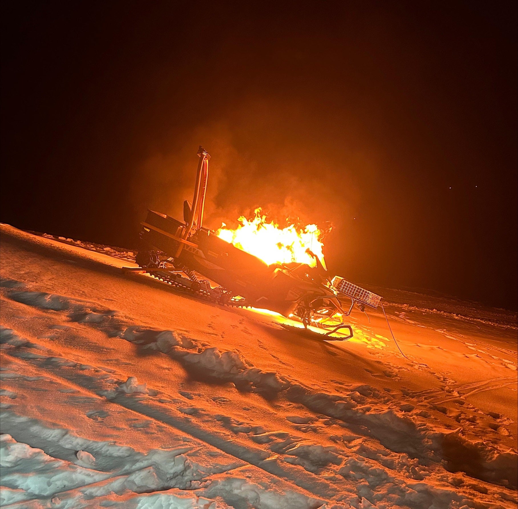 Die Mitarbeiter holten sofort ein Pistengerät und begannen erneut, den Brand zu löschen. Mit einer Pistenraupe wurden die mittlerweile verständigten Feuerwehrleute von drei Wehren zur schwer zugänglichen Brandstelle gebracht. Gegen 4.30 Uhr konnte "Brand aus" gegeben werden. Das Schneemobil brannte vollständig ab, auch zehn Bäume wurden vernichtet.
