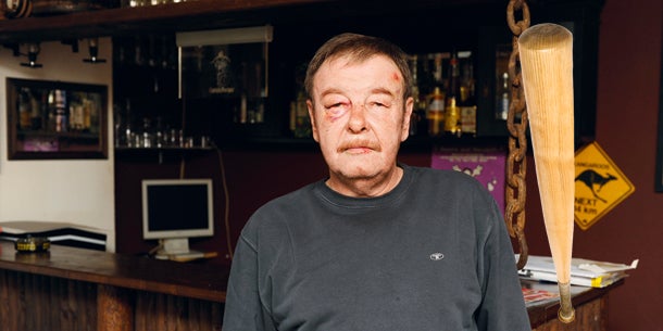 „Bei dieser Attacke ging es für mich nur noch ums Überleben. Das alles dauerte fünf Minuten. Die beiden haben mir einen Ball in den Mund geschoben und mit Klebeband zugeklebt. Ich lag dann am Boden, und sie haben auf mich eingedroschen. Ich wusste, wenn ich mich jetzt nicht wehre, bin ich tot. Also hab ich mich aufgerafft und ihnen den Knüppel entrissen. Dann hab ich sie aus meinem Haus verjagt“, so der gelernte Metzger.