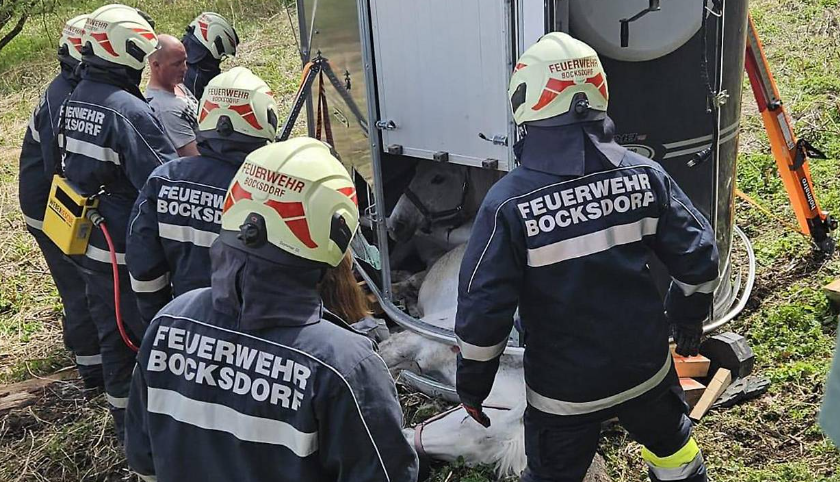 Ein Fahrzeuggespann war von der Straße abgekommen. Der Pferdeanhänger kippte um und blieb auf dem Dach liegen, bestätigte die Feuerwehr auf Anfrage Medienberichte.