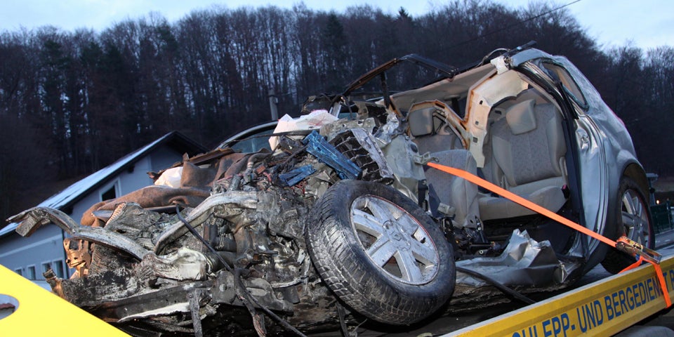 Für die Einsatzkräfte sieht der Unfallort aus wie ein Schlachtfeld. Die Front des Reisebusses ist ebenso völlig zerstört wie der Pkw. Im Auto haben die beiden Insassen, es soll sich um ein Ehepaar handeln, keine Chance. Die beiden können nur noch tot geborgen werden.