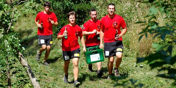 Kraft und Durchhaltevermögen sind beim Bierkistenlauf der Feuerwehr im burgenländischen Schattendorf (Bezirk Mattersburg) am kommenden Samstag gefragt. Die Teilnehmer müssen dabei die vorgegebene Strecke jeweils zu viert bewältigen und in der Gruppe eine Kiste Gerstensaft mitschleppen. Zusatzauftrag: Die mitgeführten 20 Flaschen - das sind mengenmäßig 20 Krügel Bier - sollten bis zur Ziellinie geleert werden.