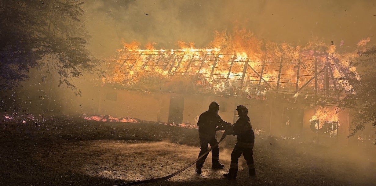 Zwei historische Gebäude des Ensembles brannten vollständig ab, berichtete das Bezirksfeuerwehrkommando Güssing. Ein Blitz dürfte während eines Gewitters in das Heimathaus eingeschlagen und den Brand verursacht haben. Neun Feuerwehren waren mit über 170 Mitgliedern an Ort und Stelle.