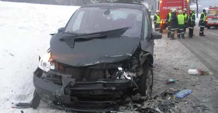 dadurch spiegelglatten Fahrbahn. Eine 45-jährige Beifahrerin musste mit dem